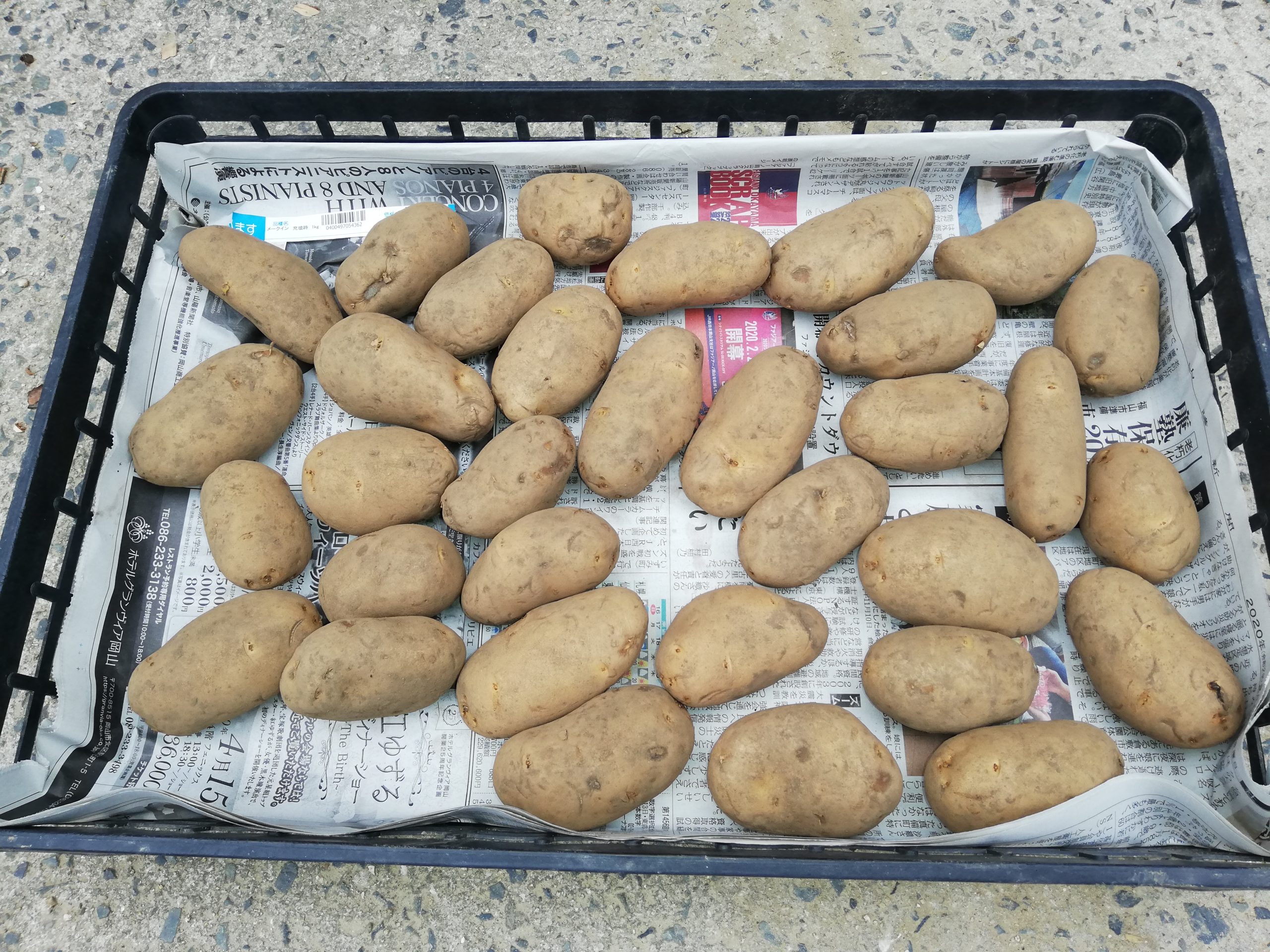 今日からジャガイモのたねイモを太陽に当てて芽を出させます。