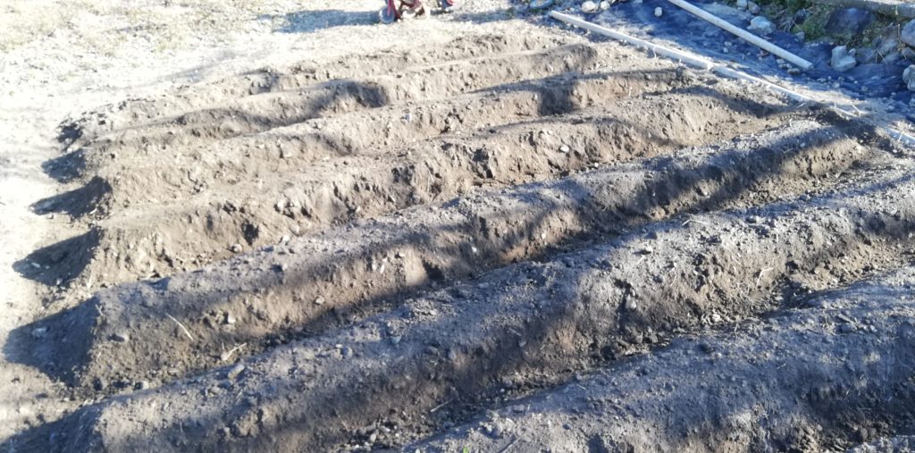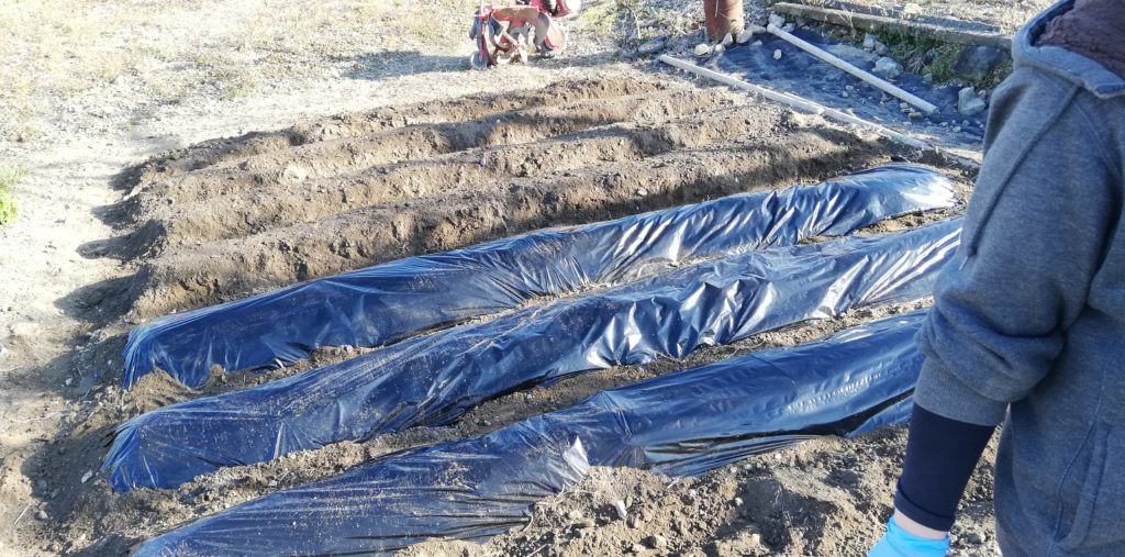 じゃがいもの種芋を植える 農作業 Twitter Facebook LINE 2020.03.22 じゃがいもの種芋を植えました。 畝を作りました。けっこう難しい。 じゃがいも専用の肥料、マルチを半分張ってみました。 マルチを張る時はマルチを押さえる土を残しておくこと。