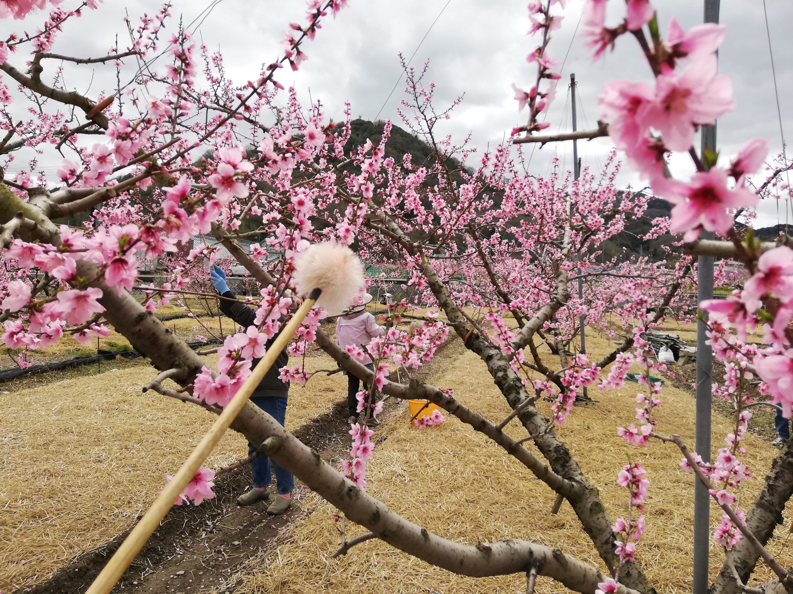 実際は桃の受粉、桃の花粉つけが正しいのですが、