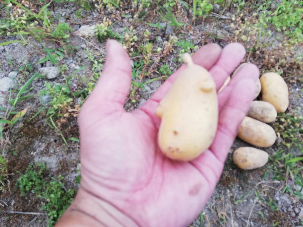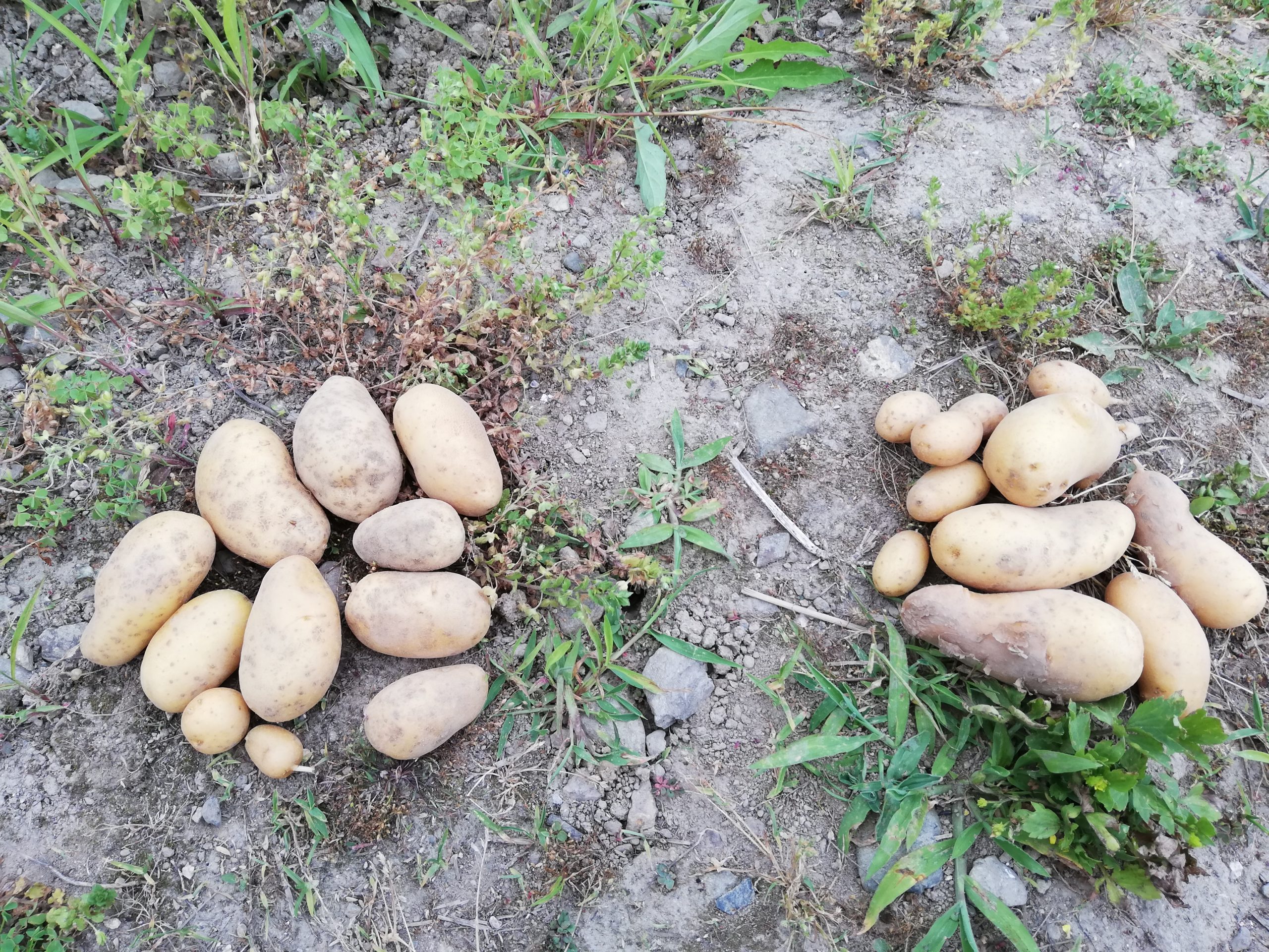 じゃがいも比較 農作業 Twitter Facebook LINE 2020.06.10 右がマルチ、左が路地。マルチのほうが大きいような気がします。それに、モグラの被害も少なく、もちろん雑草もありませんでした。