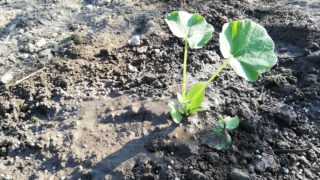 えびすかぼちゃを2本植えました。息子が手伝ってくれました