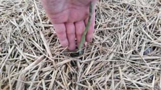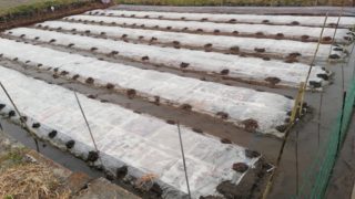 じゃがいもに化学肥料を入れるマルチを張っていないところも芽かきをしました。息子も手伝ってくれました。